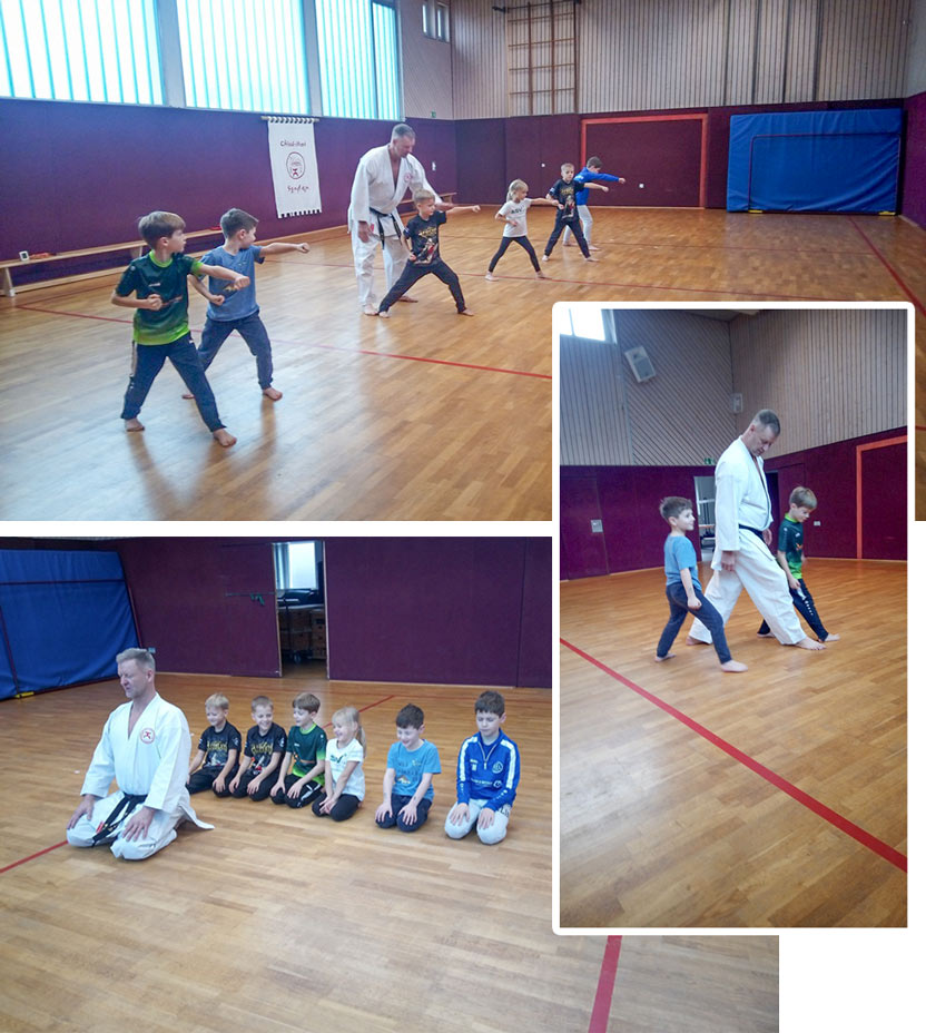 Der Start unseres Kindertrainings, war überwältigend. Mit einem so großen Andrang haben wir nicht gerechnet, so unser Dojo-Leiter Christian. So mussten wir einige Kinder auf später vertrösten. Mit kurzen Spielen, Spaß und Spannung wird den Kindern der Einstieg in die Karate-Kampfkunst gezeigt. Nach einer kurzen Aufwärmphase, folgen Grundschultechniken im Stand und auch im Vorgehen. Anschließend werden noch Dehn - und Kraftübungen durchgeführt. In einigen Wochen werden die Kinder in das normale Training eingegliedert. In dieser Gruppe sind leider keine Plätze frei, wir führen aber eine Warteliste. Hierfür bitte bei Christian melden.