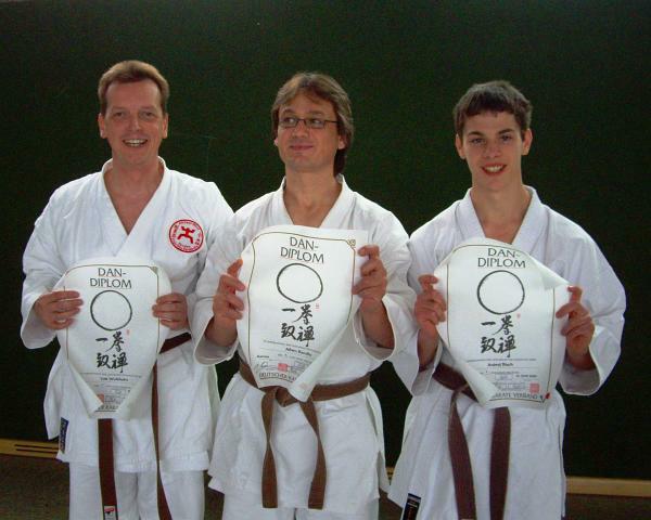 Drei neue Schwarzgurte hat das Dojo seit Juni 2009 in seinen Reihen. Nach der einem Jahr Prüfungsvorbereitung und vielen Jahren als Farbgurtträger legten Lutz Waldhelm, Afrim Bacaliu und Andrej Risch ihre Prüfung zum 1. Dan erfolgreich in Kamen ab.
